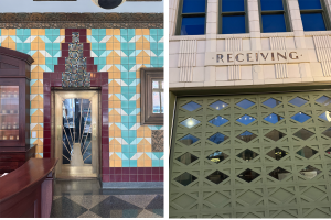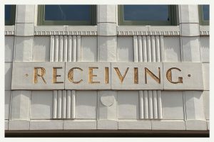 As I walked the neighborhood in search of dinner, I came across an Art Deco dream — the former 1920s era Coca-Cola bottling plant now known as the Bottleworks district, a center for commerce history and the arts. Art Deco is one of my favorite design styles, and I was enthralled by the stone carving throughout the building and the stunning former bottling plant tasting room with its stained glass windows and handmade tiles– now a hotel lobby. As I walked out, I passed the loading docks and this Receiving sign. It made me think of all of the gifts I have received in the way of connections and experiences.