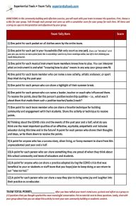 Team Tally is my go-to community building, reflection, and review activity for groups in various settings, situations, and sizes online and in person. Team Tally is a powerful reflection and relationship-building activity because it blends the right amount of healthy competition to draw participants in, and if thoughtfully designed, carefully sequenced questions will keep them sharing in a non-threatening, collaborative atmosphere.